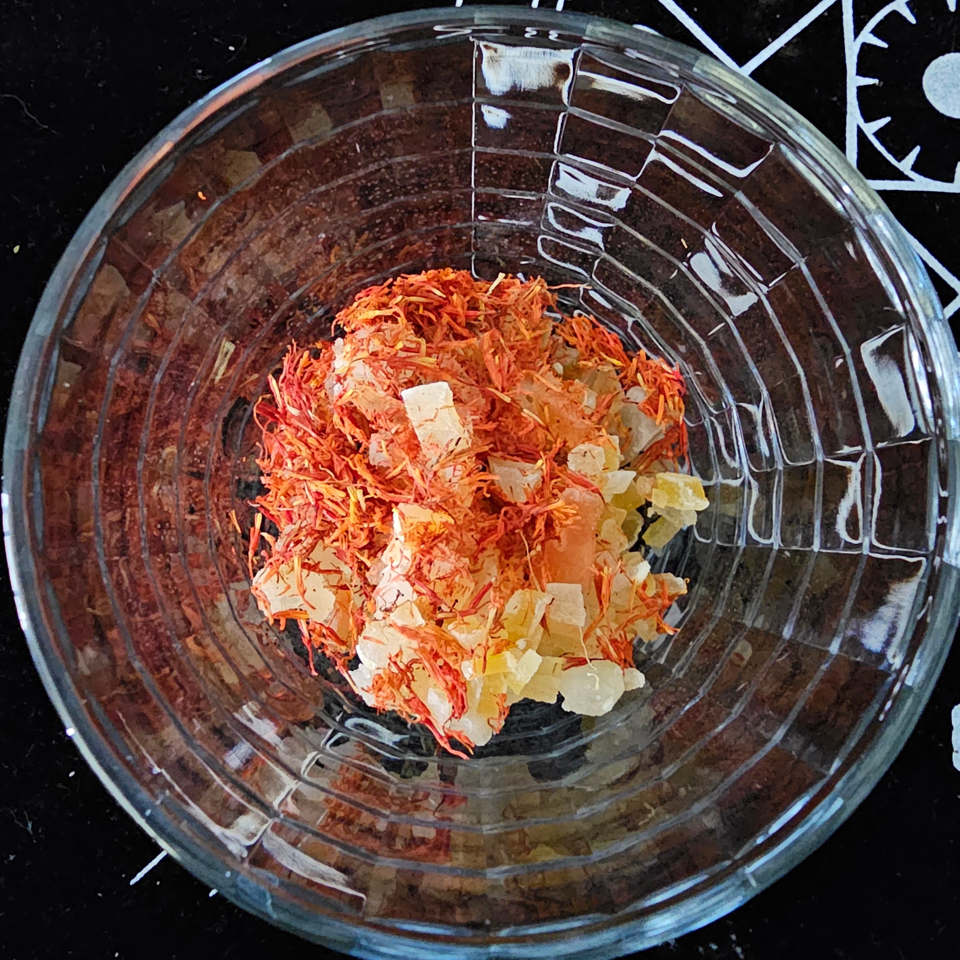 Ingredients: Sencha Green Tea, Dried Mango Pieces, Orange Peel, Safflower Petals
